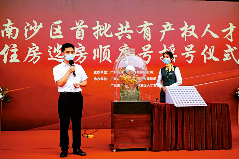 图:南沙首批共有产权人才住房选房顺序号摇号仪式在首筑花园举行,图为摇号仪式现场\受访者供图