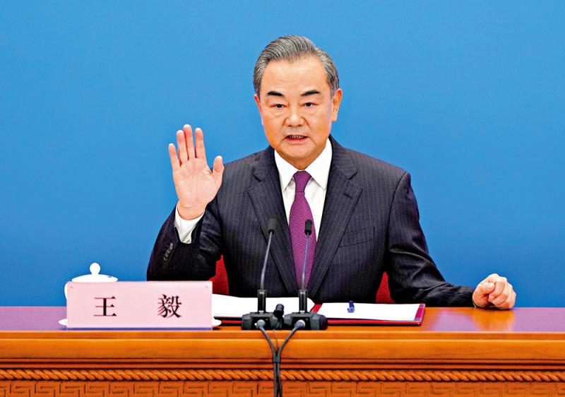 图:3月7日,十三届全国人大四次会议在北京人民大会堂新闻发布厅举行记者会,邀请国务委员兼外交部长王毅就“中国外交政策和对外关係”相关问题回答中外记者提问。\新华社