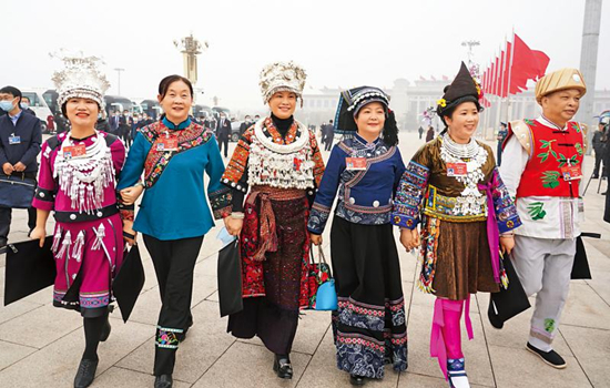 图:3月5日,十三届全国人大四次会议在北京人民大会堂开幕。这是全国人大代表走向会场。\新华社
