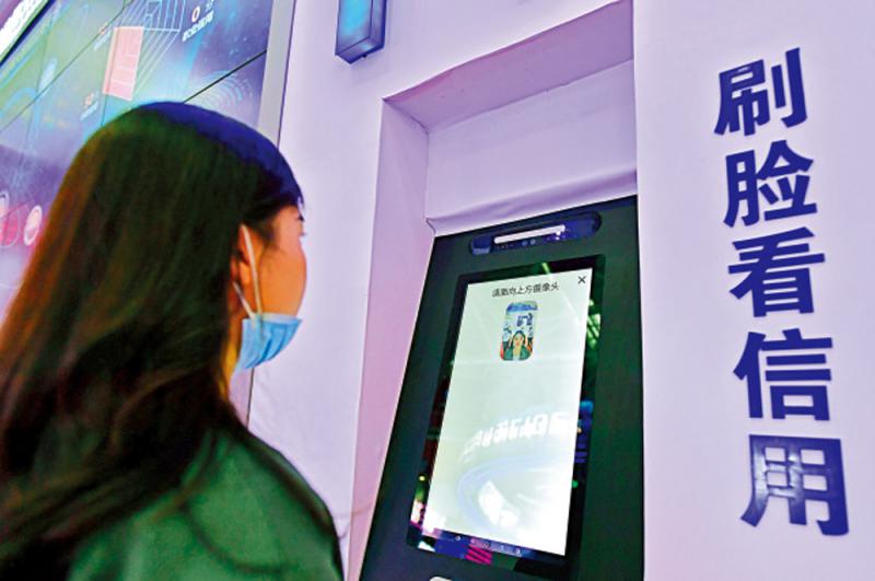 图:福建省福州市民在信用大数据平台体验刷脸看信用。\中新社