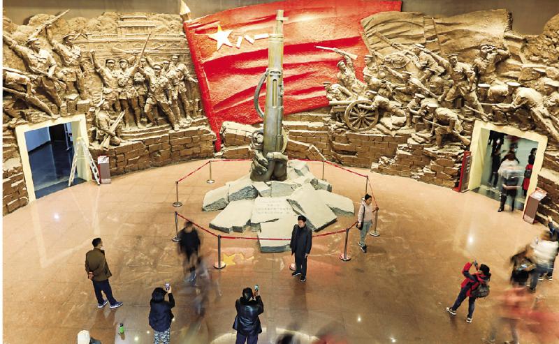 图:今年是中国共产党成立100周年,众多遊客前往红色景点参观遊览,红色旅遊正火爆。图为3月23日,遊客在江西南昌八一起义纪念馆“第一枪”雕塑前合影留念。/中新社