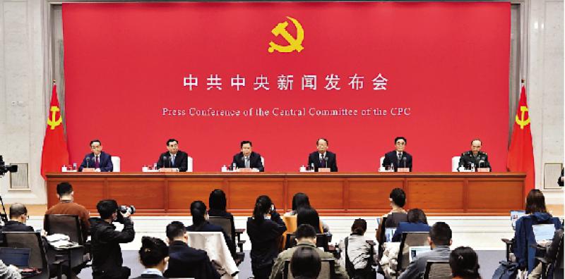 图:23日,中共中央在北京举行发布会,介绍中国共产党成立100周年庆祝活动有关情况。/新华社