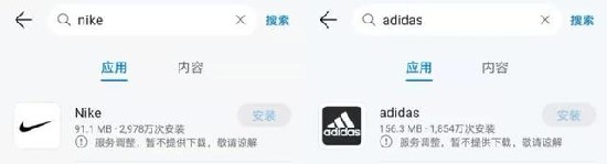 据悉,因抵制新疆棉的不妥言论陷入舆论旋涡的耐克、阿迪达斯官方App已从华为、小米、OPPO等品牌手机的应用商店里下架,搜索词条“Nike”、“耐克”、“阿迪达斯”已经没有相关结果,苹果用户目前仍可从AppStore下载耐克、阿迪达斯APP。