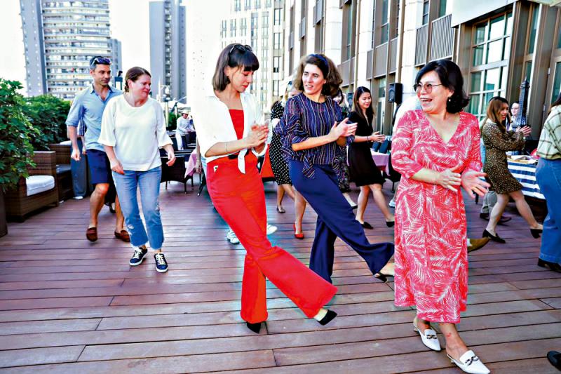 图:魏桑塔(前排中)举办法语沙龙,让中国人与法国人一起交流中法文化。\受访者供图