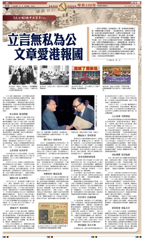没有共产党,就没有“一国两制”和香港顺利回归。这一天的《大公报》,出版4次号外,共300版,印刷百万份,破报纸有史以来的最高纪录。