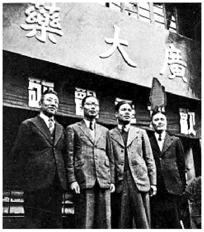 图:1943年,广大华行成都分行门市部开业,左起为陈鹤、张军光、卢绪章、张平。/受访者供图
