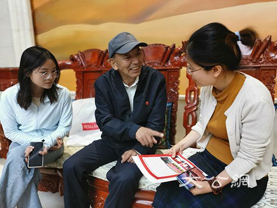 吴文汉带着材料到采访团所在酒店与记者见面。/记者 刘俊海 摄