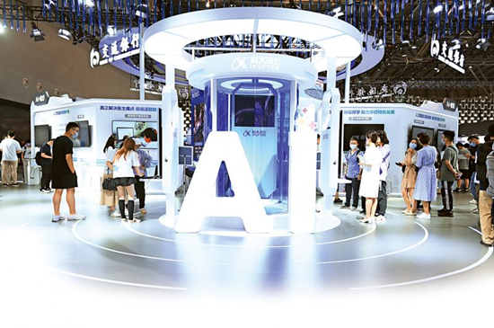 图:7月8日,2021世界人工智能大会开幕,超过300家企业的众多前沿人工智能技术与产品集中亮相。\新华社