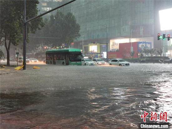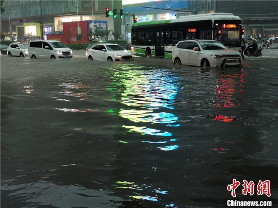 图为7月20日晚间,郑州市区,车辆在路上缓慢行驶(文图无关)。 韩章云 摄