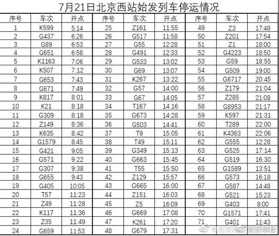 记者从中国铁路北京局集团公司了解到,受河南多地遭遇持续强降雨天气影响,7月21日北京西站71趟始发列车停运。已购买停运列车车票的旅客,可于30日内办理全额退票手续。北京铁路部门提示,请广大旅客合理安排出行时间,关注铁路部门公告信息。