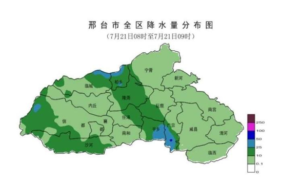 邢台市7月21日8时至9时降雨分布图。 邢台市气象台供图