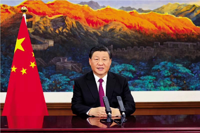 图:9月2日晚,中国国家主席习近平在2021年中国国际服务贸易交易会全球服务贸易峰会上发表视频致辞。/新华社