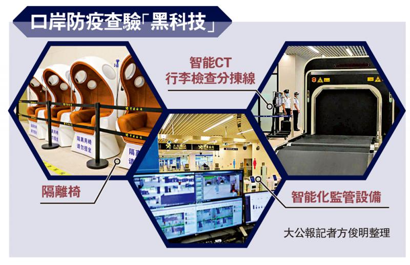 在新启用的青茂口岸,各类查验与防疫“黑科技”亮相,涵盖红外测温仪、智能CT行李检查分拣线等海关智能化监管设备,以及专设的隔离椅和负压隔离单元,为安全通关保驾护航。
