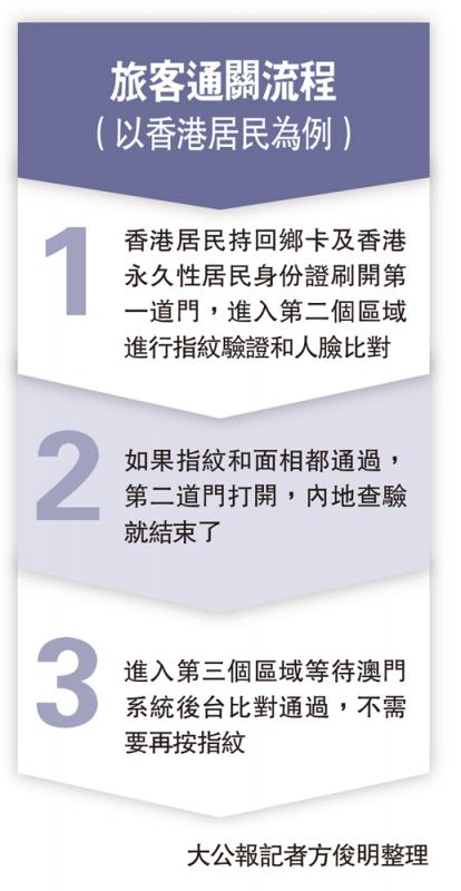 为进一步便利粤澳人员往来,珠海边检总站经与澳门治安警察局沟通协商,自8日起,在港珠澳大桥珠海口岸珠澳通道、横琴口岸同步扩大合作查验通道通行人员范围;将“合作快捷查验通道”、“合作人工查验通道”的通行人员范围由目前符合条件的内地、澳门居民扩大到符合条件的香港居民。