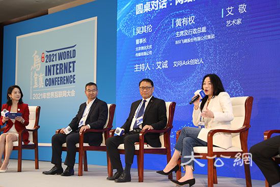 2021年世界互联网大会乌镇峰会于9月26日-28日在浙江乌镇召开。艺术家、创作歌手、作家艾敬受邀受邀出席大会并参加圆桌对话。谈及如何将中国文化融入艺术创作,艾敬表示,艺术家要用人类命运共同体的国际视野和思想指导,让艺术作品能够产生共鸣。