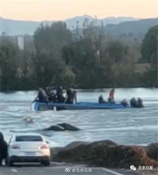 根据现场视频可以看到,多人站在车顶,救援正在进行。