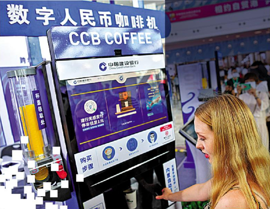 图:去年5月8日,一名外国游客在中国国际消费品博览会使用数字人民币咖啡机购买咖啡。\资料图片