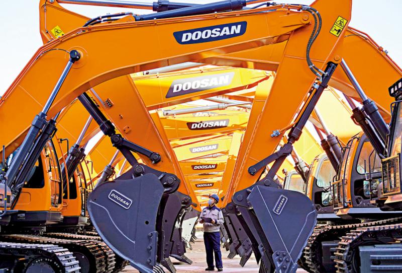 图:中国制造业迈向高质发展,成为经济增长一大动力。图为山东生产的工程车辆。\新华社