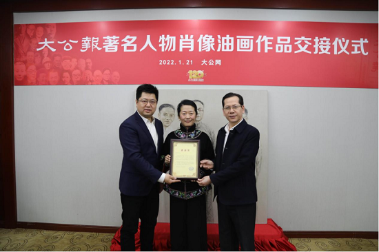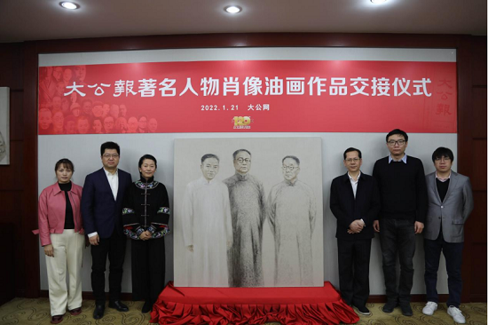 今年6月17日,大公报即将迎来创刊120周年。大公报社长助理、大公网执行总裁兼总编辑王文韬介绍,为纪念这份现存历史最为悠久的中文报纸,秉承“忘己之为大,无私之谓公”的报人精神,以“文人论政、文章报国”为己任的家国情怀,去年9月,大公网委托任鸢女士以大公报著名人物为题材,创作了27幅人物肖像油画作品。陈永新先生得知这一项目后,立刻给予高度认可和鼎力支持。