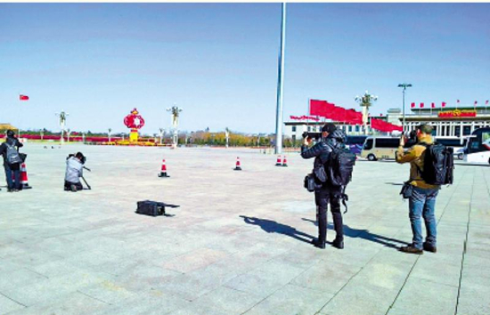3月4日,全国政协十三届五次会议在人民大会堂开幕。虽然当天恰逢北京大风黄色预警,但丝毫没有影响记者们前往报道的热情。大巴车还未停稳,外国记者们就纷纷举起单反相机拍摄人民大会堂和天安门外景,下车后更是不顾工作人员催促,争相拍摄大风天气特有的“红旗招展”。