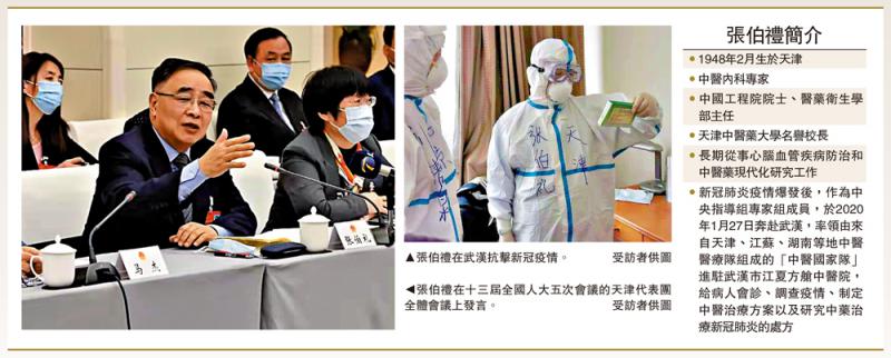 左图:张伯礼在十三届全国人大五次会议的天津代表团全体会议上发言。右图:张伯礼在武汉抗击新冠疫情。\受访者供图