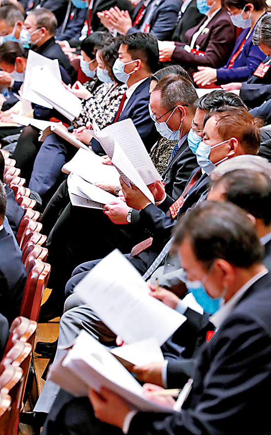 图:3月8日,十三届全国人大五次会议举行第二次全体会议。这是全国政协委员列席会议。\新华社