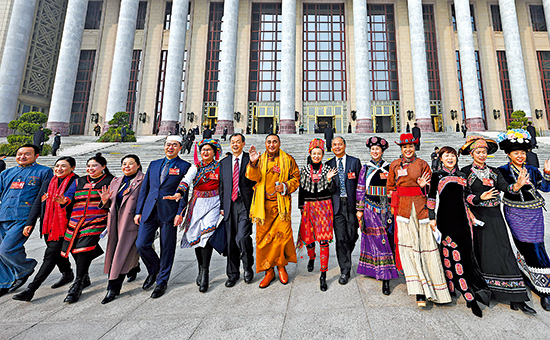 图:全国政协会议闭幕会后,委员们走出人民大会堂。\新华社