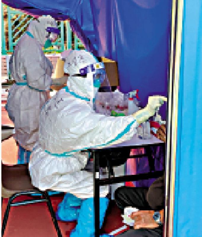 图:中山大学附属第一医院援港核酸采样队张清容在采样。\受访者供图