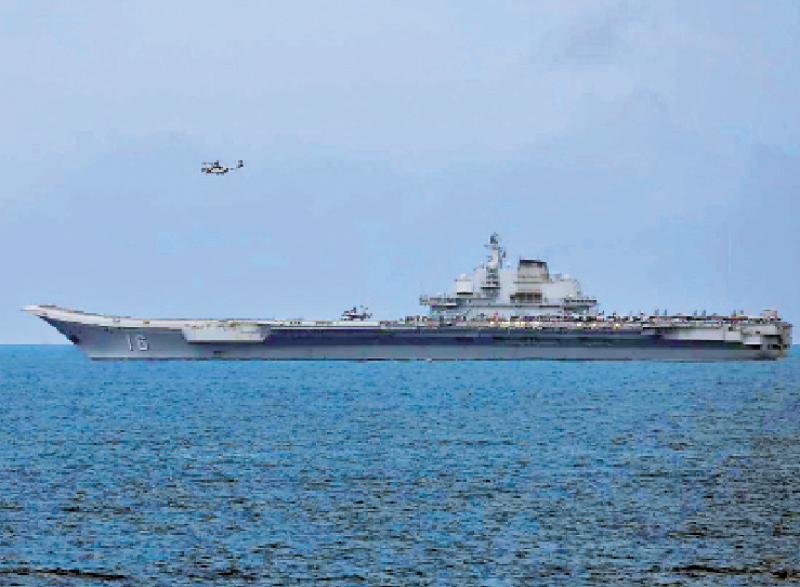 辽宁舰10日当天进行了歼-15舰载战斗机和直-8(图)舰载直升机的舰上起降。