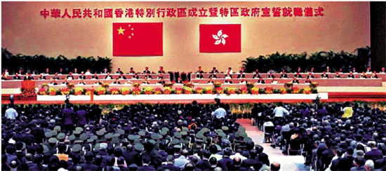图:香港特别行政区成立暨特区政府宣誓就职仪式现场。