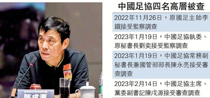 值得一提的是,中国足球领域近期已有多人被查,包括中国国家男子足球队原主教练李铁,中国足球协会第十一届执委会成员、原秘书长刘奕,中国足球协会常务副秘书长兼国家队管理部部长陈永亮等。