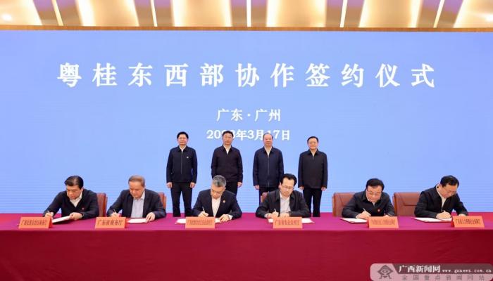 广东、广西两省区农业农村厅、人力资源和社会保障厅、商务厅分别签署《丘陵山区农业机械化发展合作框架协议》《“粤桂社保通”合作框架协议》和《开展粤桂家政协作对接合作协议》。