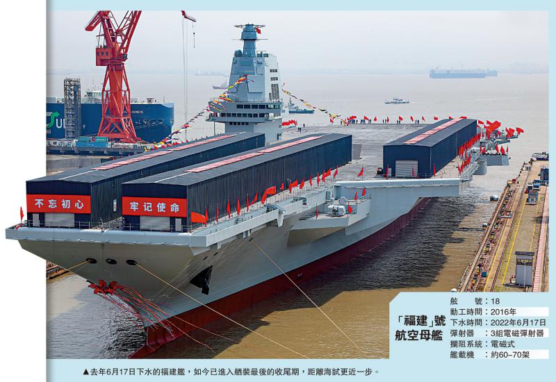 航母在服役前,要经过建造、下水、舾装、繫泊、试航等5个阶段。在舾装(舰船下水后安装机械、电器、电子设备)阶段,需要对内部各系统装备进行安装、调试、验收。央媒日前曝光,福建舰正在进行电磁拦阻系统施工,意味着舾装进入了最后的收尾期,距离海试更近一步。