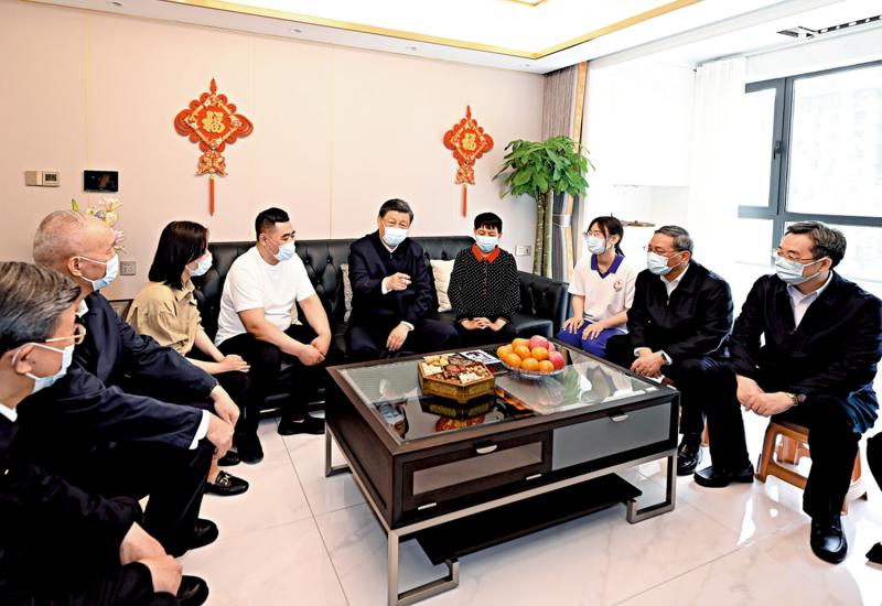 图:10日上午,习近平在容东片区南文营社区回迁居民李敬和家中看望。\新华社