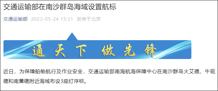 据交通运输部官方微信消息,近日,为保障船舶航行及作业安全,交通运输部南海航海保障中心在南沙群岛火艾礁、牛轭礁和南薰礁附近海域布设3座灯浮标。