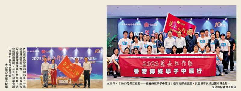 25日下午,“2023范长江行动──香港传媒学子中原行”在河南郑州启动,来自香港和河南两地的19位学生将走进郑州、焦作、三门峡等地,感受中原大地山河壮丽与经济民生发展,领略民风人情和历史文化。启动仪式上,河南省委宣传部副部长、一级巡视员赵云龙与香港大公文汇传媒集团执行总经理、大公报副总编辑、范长江同学会副主席韩纪文共同为采访团授旗,并勉励学子们在河南多走走、多看看,感悟河南贯彻新发展理念取得的新成效,以及体验中国式现代化的活力。