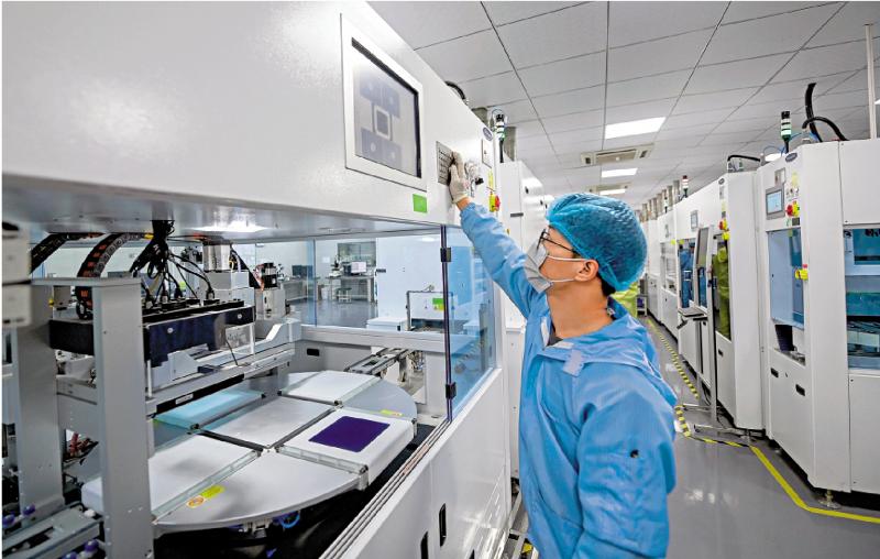 图:在新出炉的民营企业500强中,414家企业的关键技术主要来源于自主开发与研制。图为在一家民企的研发实验室内,自动化设备在进行光伏板的丝网印刷。\新华社