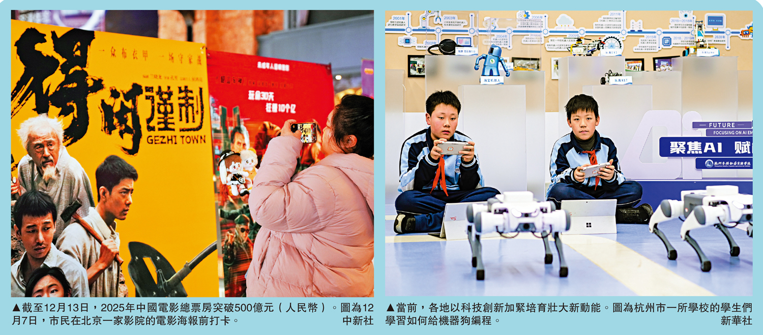 在12月13日举办的2025-2026中国经济年会上,与会人员就今年经济形势、明年经济工作政策取向等多个热点问题发表了看法。会上,中央财办分管日常工作的副主任、中央农办主任韩文秀表示,一年来,我国经济顶压前行,向新向优发展,展现出了强大的韧性和活力。根据国家电影局统计,截至12月13日下午,2025年中国电影总票房突破500亿元(人民币,下同)。