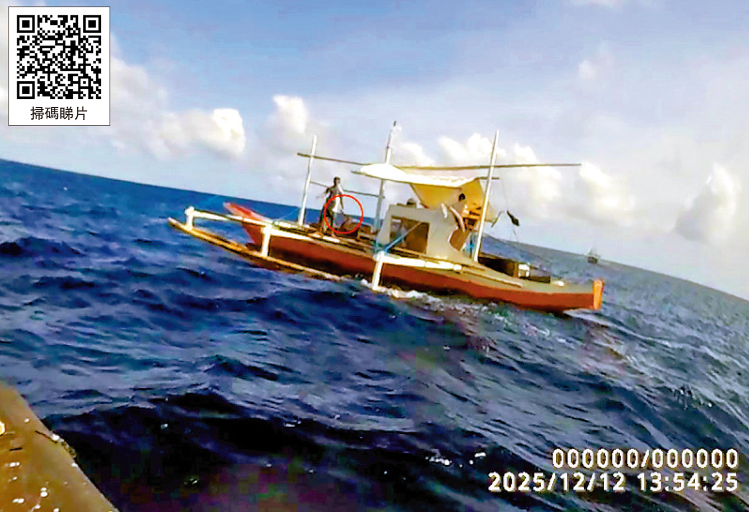 图:内地《环球时报》获得的现场画面显示,菲律宾“渔民”面对中国海警执法人员的管控和取证,竟挥舞长刀公然挑衅。