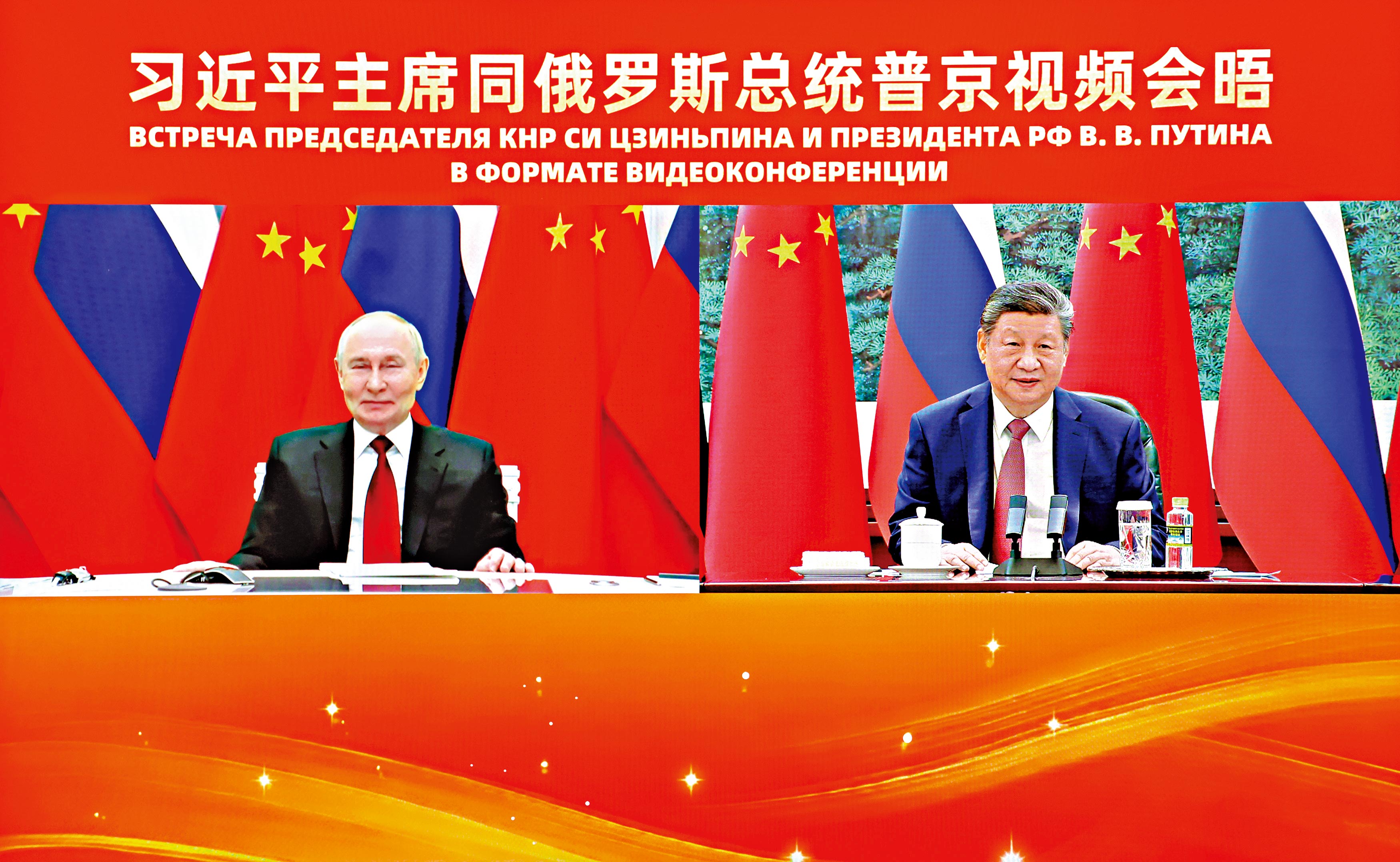 2月4日下午,国家主席习近平在北京人民大会堂同俄罗斯总统普京举行视频会晤,共同擘画中俄关系新的蓝图。习近平表示,开年以来,国际形势愈发动荡。作为负责任大国和联合国安理会常任理事国,中俄两国有义务推动国际社会坚守公平正义,坚定扞卫二战胜利成果,坚决维护以联合国为核心的国际体系和国际法基本准则,携手维护全球战略稳定。