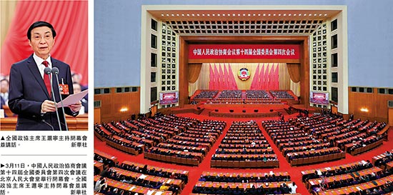 全国政协十四届四次会议昨日在北京人民大会堂举行闭幕会。全国政协主席王沪宁主持闭幕会时表示,会议期间,全体委员认真讨论政府工作报告、“十五五”规划纲要草案和其他报告,认真审议政协常委会工作报告和提案工作情况报告等文件,取得丰硕成果。全体委员决心为新时代新征程推进中国式现代化、不断续写经济快速发展和社会长期稳定两大奇迹新篇章作出更大贡献。