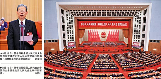 十四届全国人大四次会议圆满完成各项议程,12日下午3时,在人民大会堂举行闭幕会。大会主席团常务主席、执行主席赵乐际主持闭幕会并发表讲话。赵乐际指出,要坚持好、完善好、运行好人民代表大会制度,切实发挥国家根本政治制度优势,认真履行宪法法律赋予的职责,为实现“十五五”目标任务提供法治保障。
