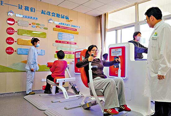 图:内地医卫工作转向以健康为中心。图为3月19日,山东济南居民在运动促进健康中心内进行体质检测。\新华社