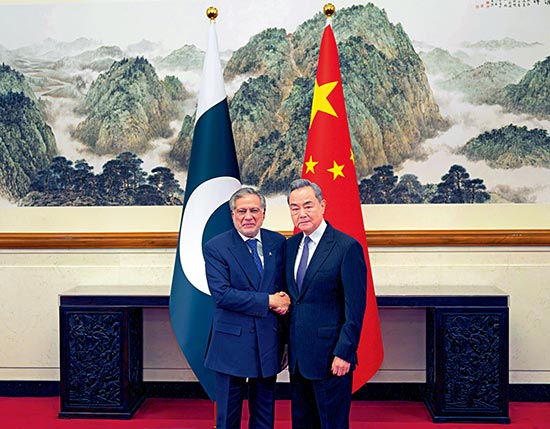 图:3月31日,中共中央政治局委员、外交部长王毅在北京同巴基斯坦副总理兼外长达尔举行会谈。 新华社
