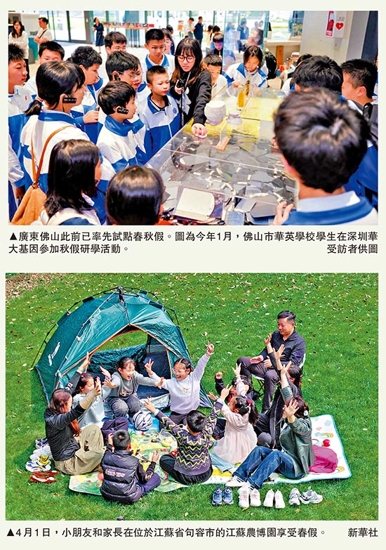 “十五五”规划纲要明确提出,探索推行中小学生春秋假。今年的政府工作报告也提出,支持有条件的地方推广中小学春秋假。随着政策导向日益清晰,全国多地陆续进入春秋假落地实施期。在广东省,佛山去年11月率先推出义务教育阶段学校秋假,而广州、清远、肇庆等城市也在自主探索春秋假实施模式。