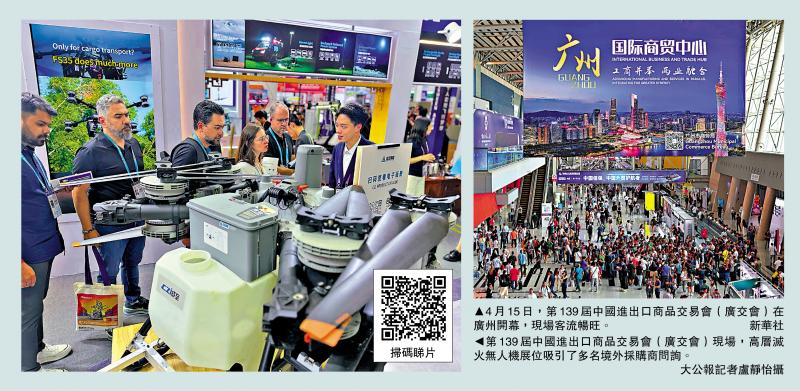在全球经贸环境复杂多变、地缘冲突与供应链波动交织的背景下,15日在广州开幕的第139届广交会吸引逾3.2万家企业参展,规模再创历届新高,成为观察中国外贸韧性与新动能的重要窗口。本届广交会首次设立“智能九区”,涵盖无人机、智能穿戴等多个新兴领域,展位超1300个,成为展会最受瞩目的核心板块之一。不少中东、南美采购商开展首日便果断下单,其中可执行高层灭火的无人机吸引了多名中东客商驻足洽谈,对中国智造赞不绝口。
