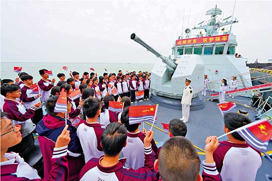 结合“战舰回家乡”活动,泰州舰、盐城舰、南通舰、东营舰等现役舰船靠泊命名城市。在人民海军诞生地江苏泰州,泰州舰首次靠泊命名城市,受到民众的热烈欢迎。在山东烟台,戚继光舰靠泊民族英雄戚继光的故乡,面向公众开放。除了舰艇开放之外,海军部队还组织多处军港和军营开放活动。民众走进宁波、上海等地海军军用机场,与空警-500H、运-8、运-9、直-9D等现役主战机型近距离接触。