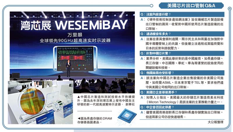对此,中国商务部新闻发言人25日表示,中方一贯反对任何泛化国家安全、滥用出口管制的行为。相关法案如最终出台,将严重破坏国际经贸秩序。中方将认真评估对中方利益的影响,并将坚决采取必要措施,坚定维护中国企业合法正当权益。\大公报记者 朱烨北京报道