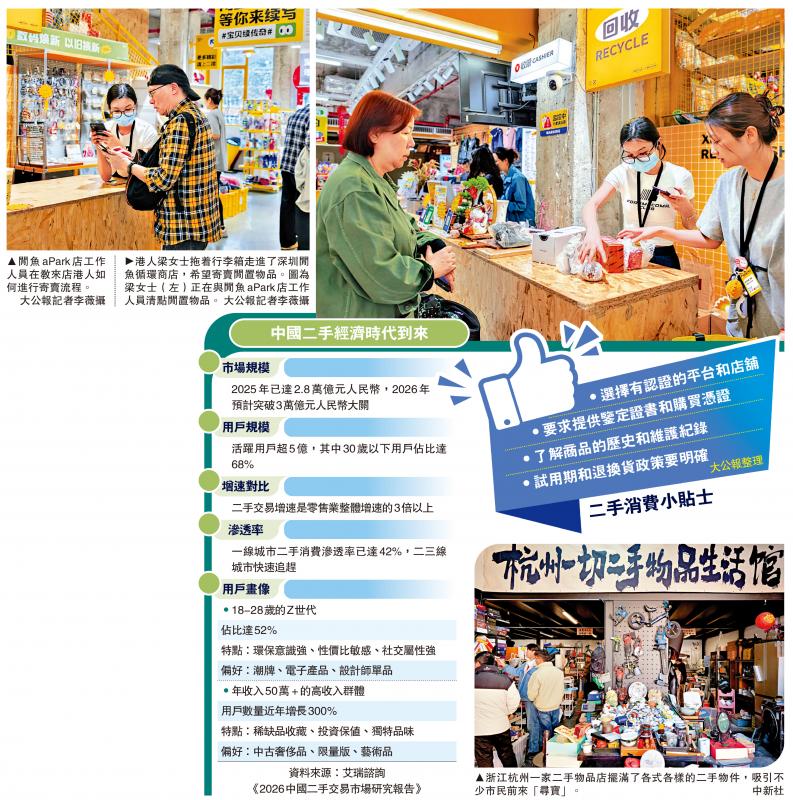 去年开始,深圳接连开设了两家閒鱼循环商店,更在年初于深圳湾万象城开办了多抓鱼的华南首店,闲置经济从线上走向线下,在大湾区形成一股清新而强劲的消费潮流,深圳一跃成为全国循环经济最活跃的城市之一。\大公报记者 胡永爱、李薇
