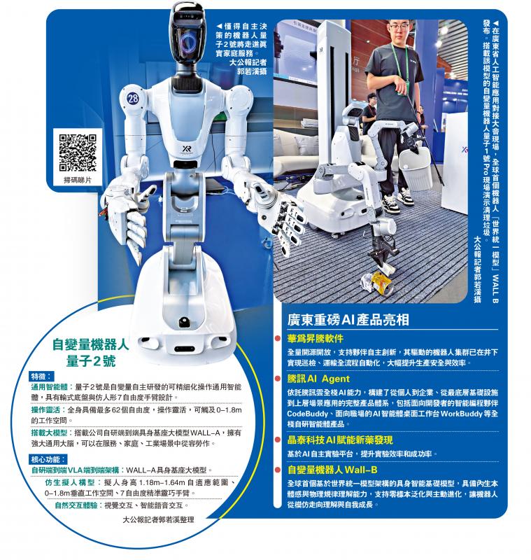 在广东省人工智能应用对接大会现场,自变量机器人发布全球首个基于世界统一模型架构(WUM)的具身智能基础模型WALL B,为机器人装上可理解物理世界的新“大脑”,让具身智能机器人投身家庭“终极考场”成为现实。